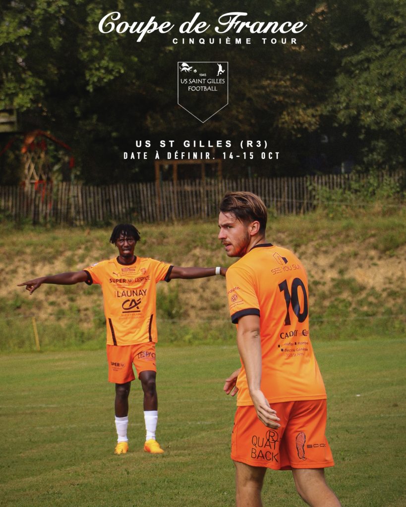 Après un déplacement à ETRELLES, équipe de R3, ce sera un nouveau déplacement contre également une équipe de R3, l’US Saint GILLES qui attend nos sangliers dans une dizaine de jours. En championnat, St Gilles a concédé une défaite lors de la 1ère journée à domicile contre GEVEZE et est allé chercher un nul à QUEDILLAC avant de s’imposer, au 4ème tour de la Coupe de France, aux tirs aux buts (trois tirs sortis par leur gardien) contre PLANCOET ARGUENON.