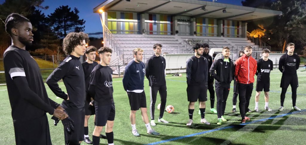 L’idée est par conséquent d’accélérer le processus de formation et d’activer le processus d’intégration séniors. C’est pourquoi j’ai insisté pour créer ces 4 groupes d’entraînement séniors avec ces 4 paliers d’entraînements : Un niveau N3, un niveau Pré-national composé de 16 joueurs à 18 jeunes proche du niveau N3, un groupe régional et un groupe district. L’autre idée qui fait suite à l’activation du processus d’intégration a été de placer Yannis LE DORSE, de retour au club, responsable de la post-formation en englobant une vision sortie U17, U18, vers District et Régional 3. Les passerelles sont activées de plus en plus tôt sur les groupes d’entraînement et sur les temps de compétition. Puis ensuite Clément LE NORMAND responsable du groupe pré-national doit terminer le process d’accession vers le groupe de Ludovic ROYER en N3.