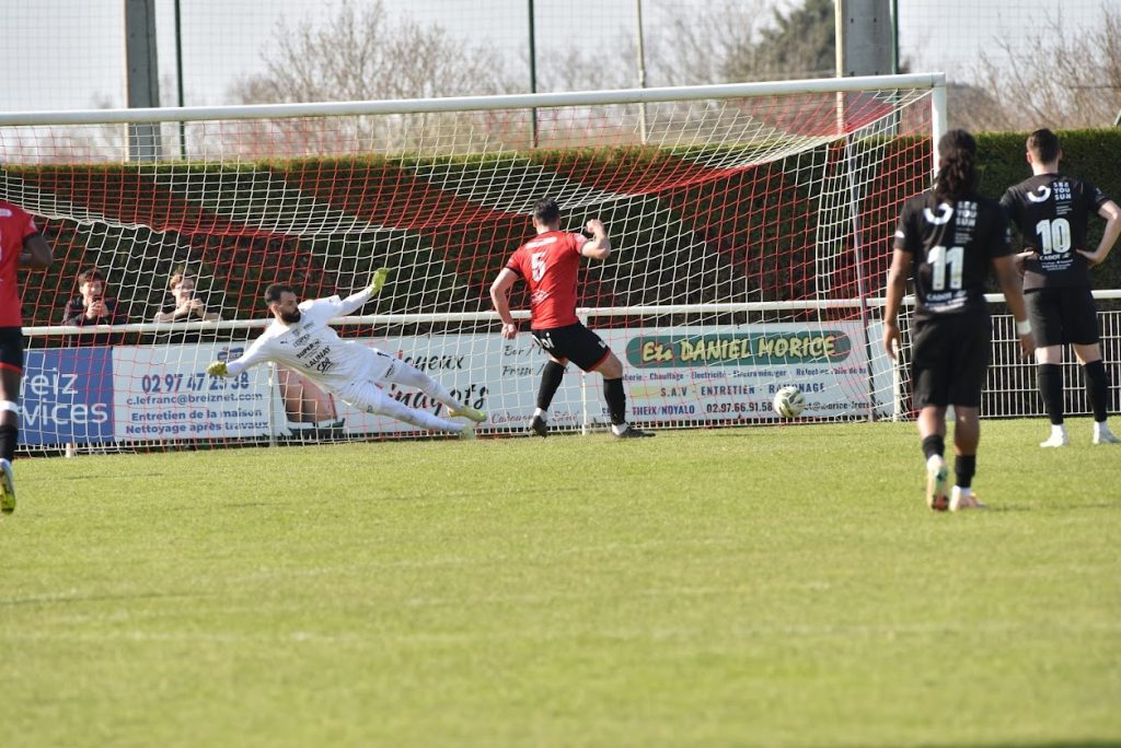 10ème égalisation sur pénalty de V. LE BOULAIRE pour SENE suite à un centre fort de J. HENRY venu de la droite et détourné sur la main de M. CROCQ