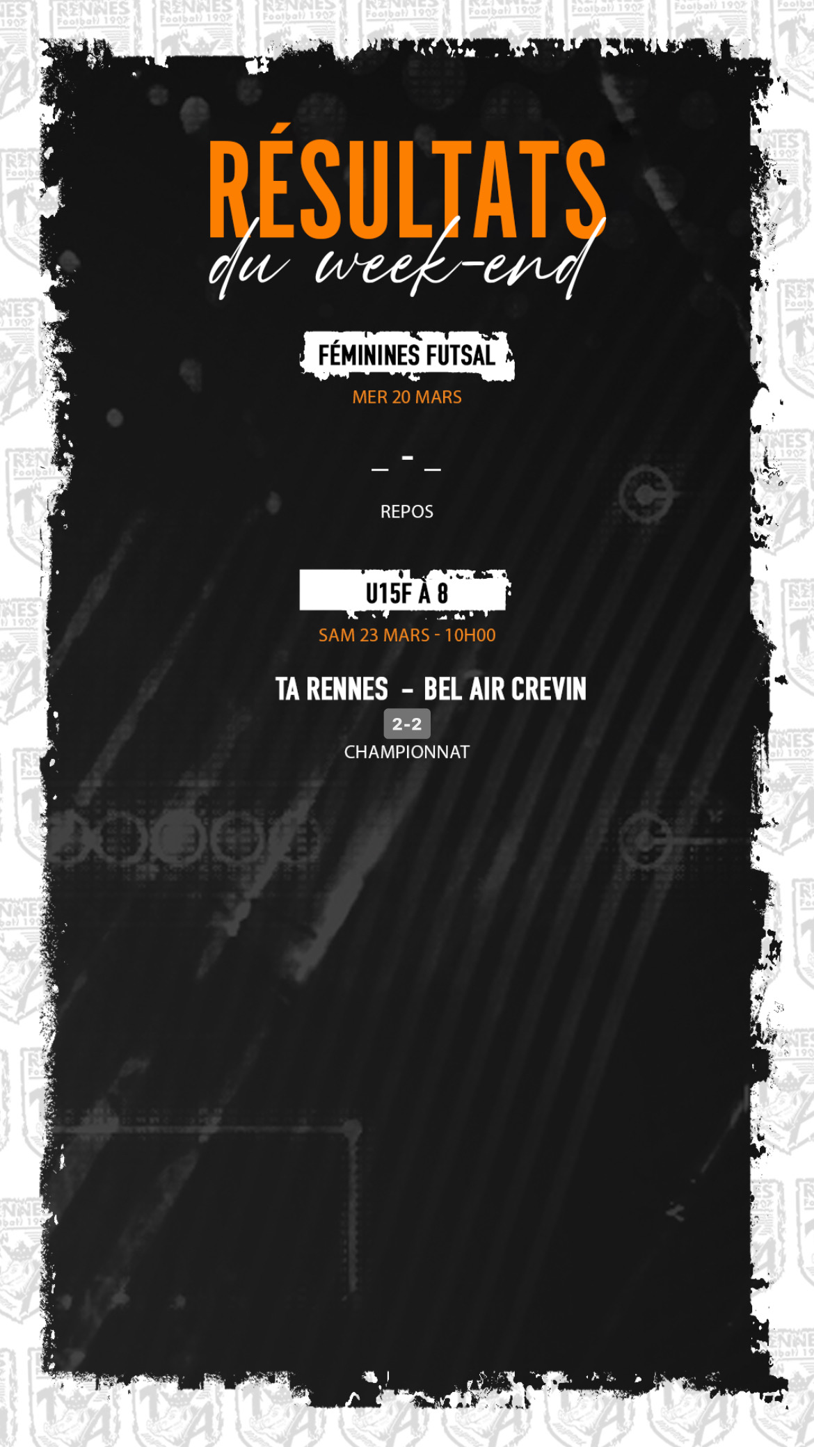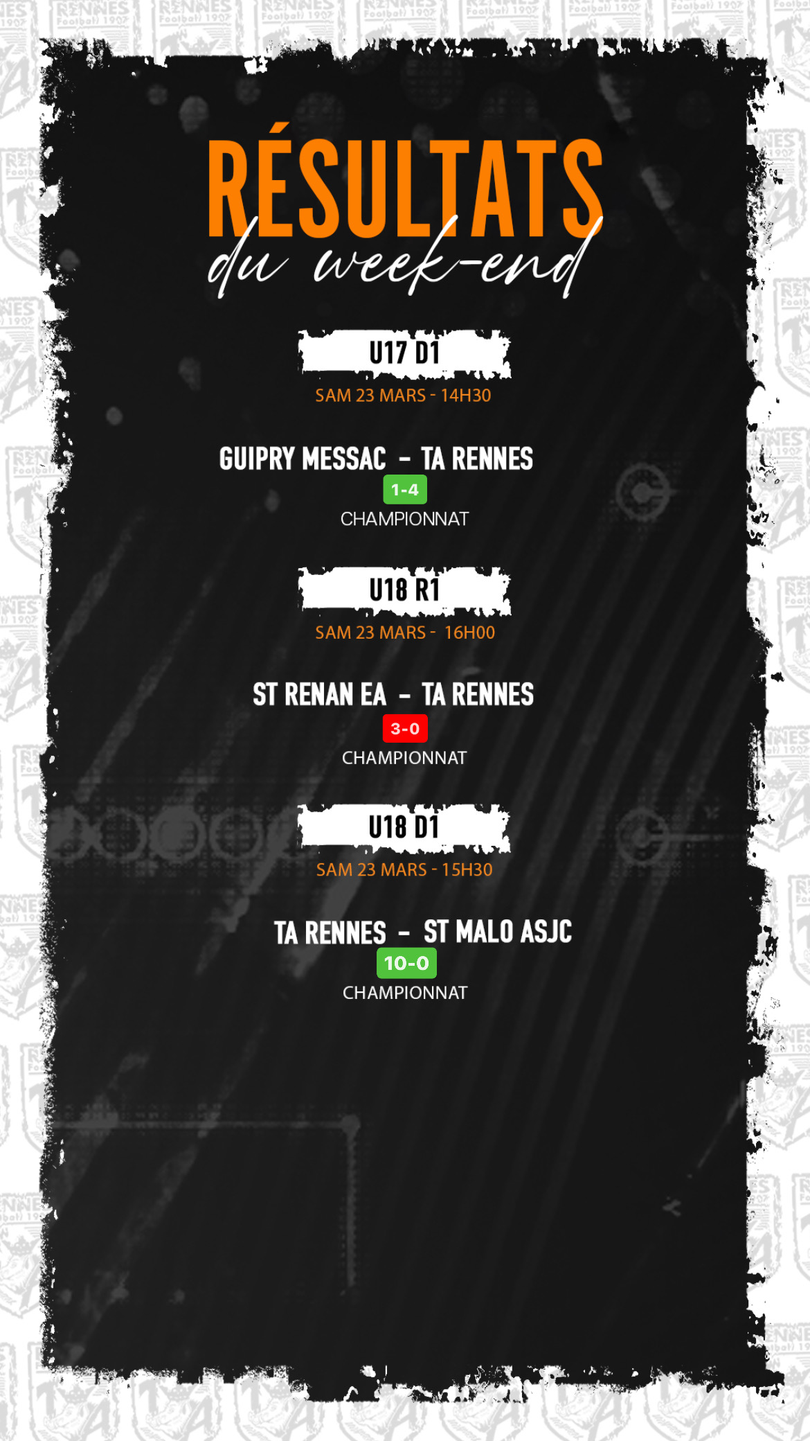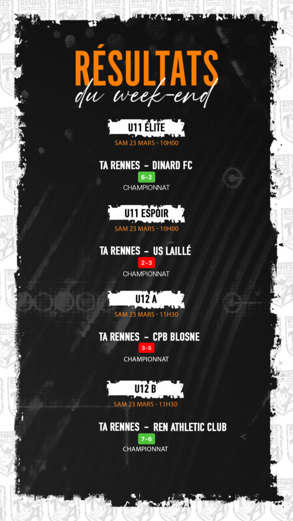 Résultats du week-end 2024-03-25 Infos du Club Retrouvez ci-dessous les résultats de ce week-end ! #TEAMTA Thomas TA Partage Twitter Facebook LinkedIn Email Articles connexes Communiqué: La TA a son nouvel entraineur La section foot de la TA a le plaisir d'annoncer la nomination de Kevin PLANTET… 𝑨𝒖 𝒄𝒐𝒆𝒖𝒓 𝒅𝒖 𝒄𝒍𝒖𝒃 : 𝗠𝗼𝗻𝘁𝗲́𝗲 𝗲𝗻 𝗥𝟭 pour nos U16 ! Grâce à leur sérieux, leur engagement et leur travail collectif depuis le début de la… Arthode & les Pêchemerga Chers adhérents, éducateurs, bénévoles et membres de la grande famille TA Football, Nous avons le…
