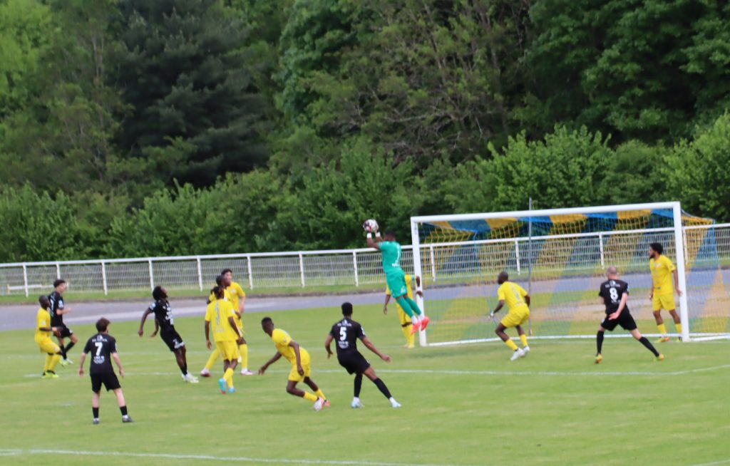 Sur ce dernier long déplacement en terre de Nouvelle Aquitaine, il aura manqué aux sangliers ce supplément d’âme qui à lui seul peut soulever des montagnes. Ce samedi, chez eux, la flamme était davantage dans le camp des PANAZOLAIS parfaitement soutenus par leurs supporters. Sur l’ensemble de la partie quoi qu’on en dise, en seconde mi-temps, même s’ils ne nous étaient pas supérieurs, ils auront eu les occasions pour tuer définitivement le match. Pourtant si les intentions des 15 premières minutes avaient pu être concrétisées par la belle phase de jeu collective aboutissant dans les pieds d’A. POISSONNEAU (9ème), but tout ouvert, le match aurait pu être tout autre, mais hélas, les jaunes progressivement ont rétabli l’équilibre et étouffé la pression haute qu’il aurait fallu maintenir. A leur tour R. MAUGAIN (22ème) sur offrande de F. HERY, et T. LE BRETON (44ème) sur corner auraient pu toucher le graal pour maintenir les espoirs mais pour cela, il faut avoir cette fameuse « GRINTA » qui met toute votre rage et votre coeur en même diapason pour que le ballon franchisse la ligne. Sur la seconde mi-temps hormis un coup franc rasant d’A. POISSONNEAU (50ème), il y aura eu surtout cette superbe occasion d’égalisation sur percussion (87ème) portée par la fraicheur du jeune A. GUILMAND et terminée par un centre parfait, hélas, pour une reprise de la tête piquée imparfaite, qui a bout portant aurait pu apporter la délivrance.