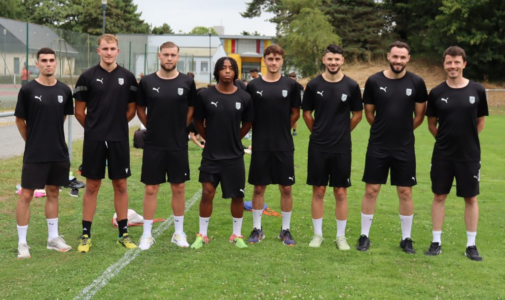 Des retrouvailles de 3 ordres avec d’abord les cadres de la N3 qui ont accepté de rester pour le nouveau challenge de rebond en R1. On y retrouve en premier les noms bien connus d’A. BOUILLENNEC, L . ROUDAUT, M.CROCQ, R.DREUSLIN, C.LAMANDÉ, T.BELLIER, A.POISSONNEAU, A.CAROFF, R .MAUGAIN, T. LE BRETON. En second lieu, la jeune troupe de marcassins issue de la R2, aux dents longues, formée à la TA pour la plupart et qui devra s’affirmer dans l’équipe fanion. On y trouve D. KOULATE, M. LE ROUX, S. BAHOUA, A. GUILMAND, P. MARQUES, N. AHAMADA S. TOURISS, E. LAMINE, N. DUCLOVEL, H. DA MOTA, T. BRUNET, M. NIANG etc…. Et enfin les nouvelles recrues avec le retour de M. POTHET (CESSON N3), J. DANIEL (LANNION N3), C. ROMAIN (CHALLANS N3), J. BALZAN (Stade BRIOCHIN R1/ N2), L. MARY (gardien FC Ouest Tourangeau R1/N3) G. COMBAUD (gardien FOUGERES). Bref tout un groupe motivé, attiré par le nouveau projet TAÏSTE avec l’envie de rebondir au sein de l’élite régionale.