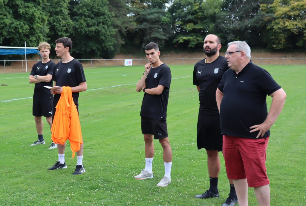 Après le mot d’accueil, et la présentation des nombreux dirigeants présents par le Président Jacques AUBRY, avant de débuter le 1er entrainement, Kevin PLANTET a présenté rapidement ses objectifs basés sur la cohésion du groupe et son investissement dans les différentes compétitions que ce soit en championnat ou les différentes Coupe de France et de Bretagne et autres. Pour cela, il ne s’agit plus de ressasser sur la précédente saison, elle est derrière, on n’en parle plus, le groupe doit franchir les portes de Salengro avec le sourire, cultiver le bien vivre ensemble et un maitre mot devra être le compagnon de toute la saison, l’EXIGENCE, que ce soit envers l’institution et son respect, ou dans l’engagement sur le terrain. Pour le coach, c’est à ce prix que chacun pourra progresser et élever son niveau tout au long de la saison.